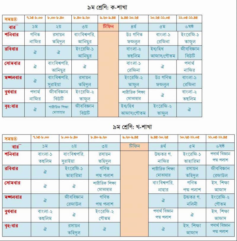 নির্বাচনী পরীক্ষা ও মডেল টেস্ট-২০১৭ এর রুটিন