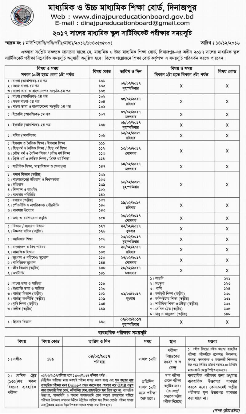 এস.এস.সি পরীক্ষার-২০১৭ এর রুটিন