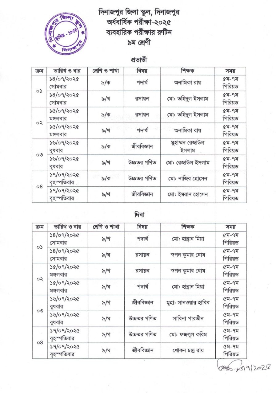 ৯ম শ্রেণীর ব্যাবহারিক পরীক্ষার রুটিন