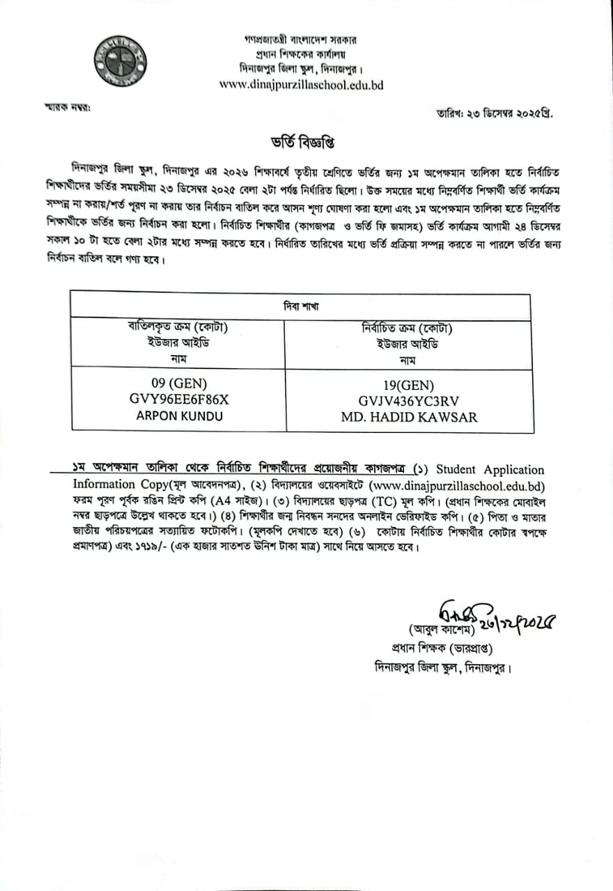ভর্তি বিজ্ঞপ্তি---২০২৬