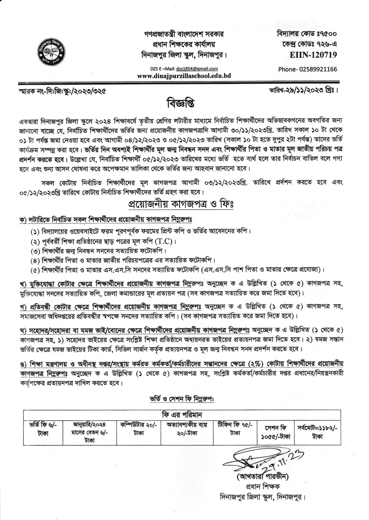 ভর্তি নোটিশ-২০২৪