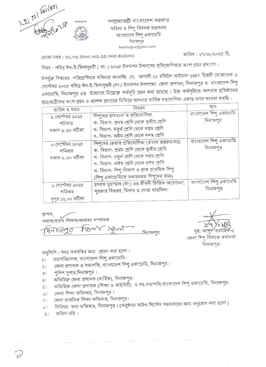 পবিত্র ঈদ-ই-মিলাদুন্নবী (সা:)২০২৫ উদযাপন উপলক্ষ্যে প্রতিযোগিতায় অংশ গ্রহন প্রসংগে।