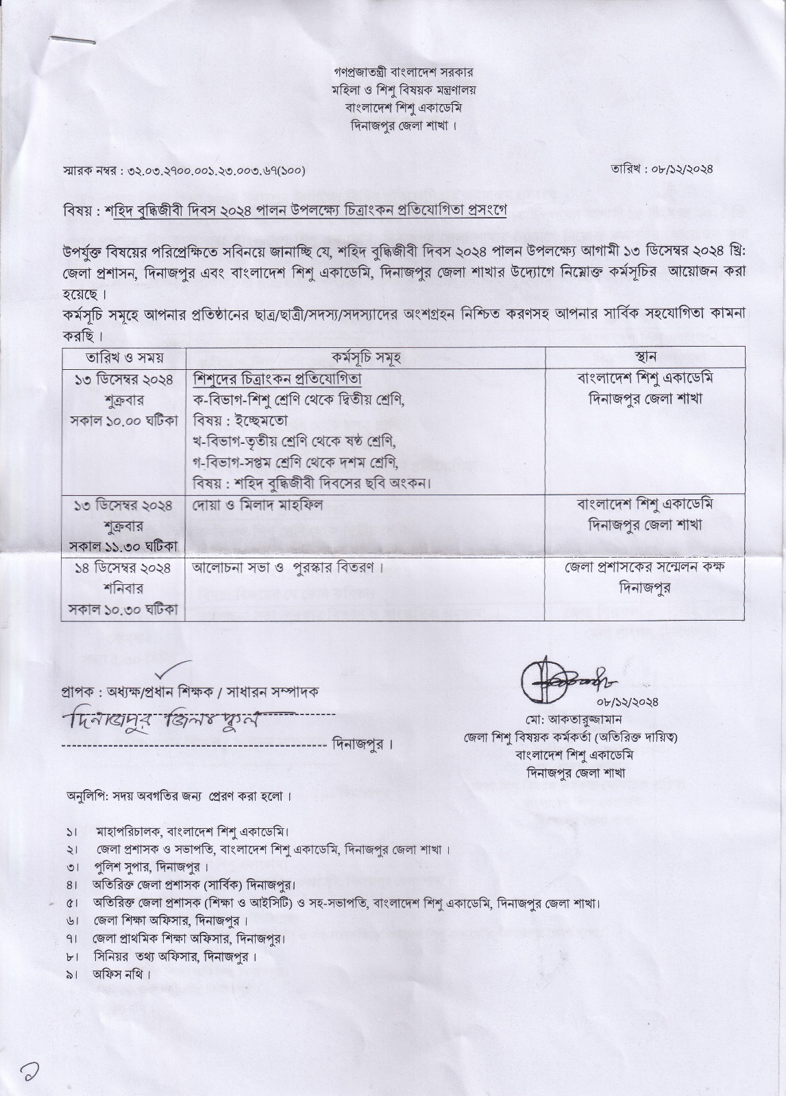শহিদ বুদ্ধিজীবী দিবস ২০২৪ পালন উপলক্ষ্যে চিত্রাংকন প্রতিযোগিতা প্রশংগে