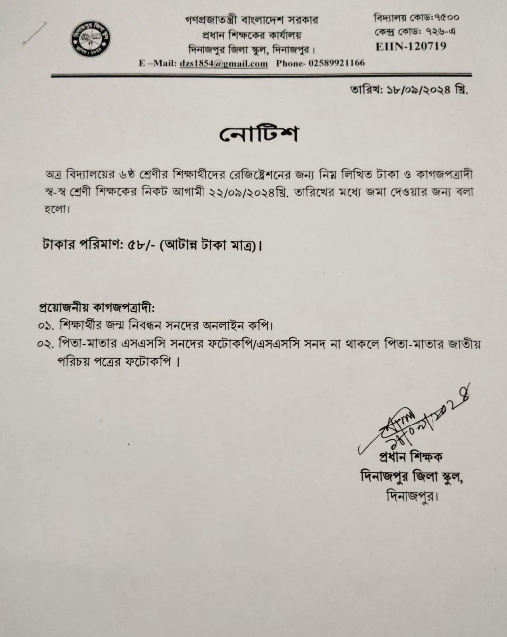 শিক্ষার্থীদের রেজিস্ট্রেশনের টাকা ও কাগজপত্রাদী জমা দান প্রসঙ্গে।