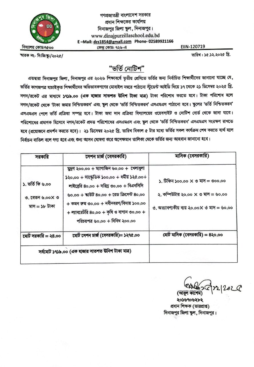 ভর্তি নোটিশ-২০২৬